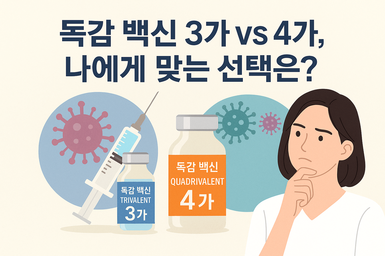 그런데 막상 접종하려고 하면 “3가 백신이 좋을까, 4가 백신이 좋을까?” 고민이 생깁니다. 이 두 백신은 숫자만 다를 뿐이라고 생각하기 쉽지만, 실제로는 예방 범위와 효과가 조금씩 달라요.