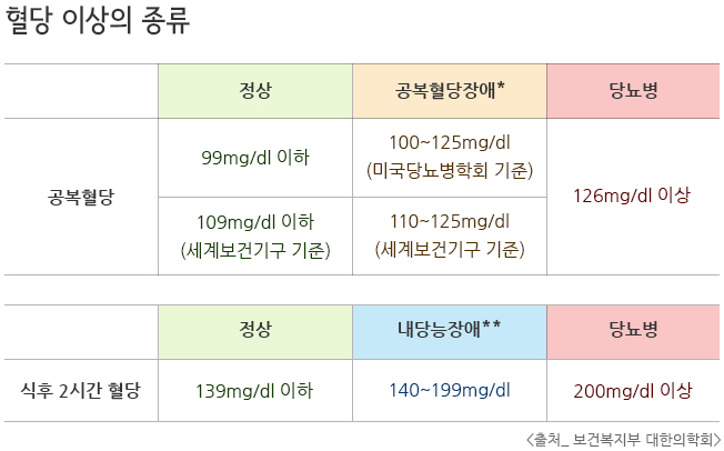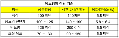 - 공복 혈당 수치로 보는 당뇨병 진단 기준