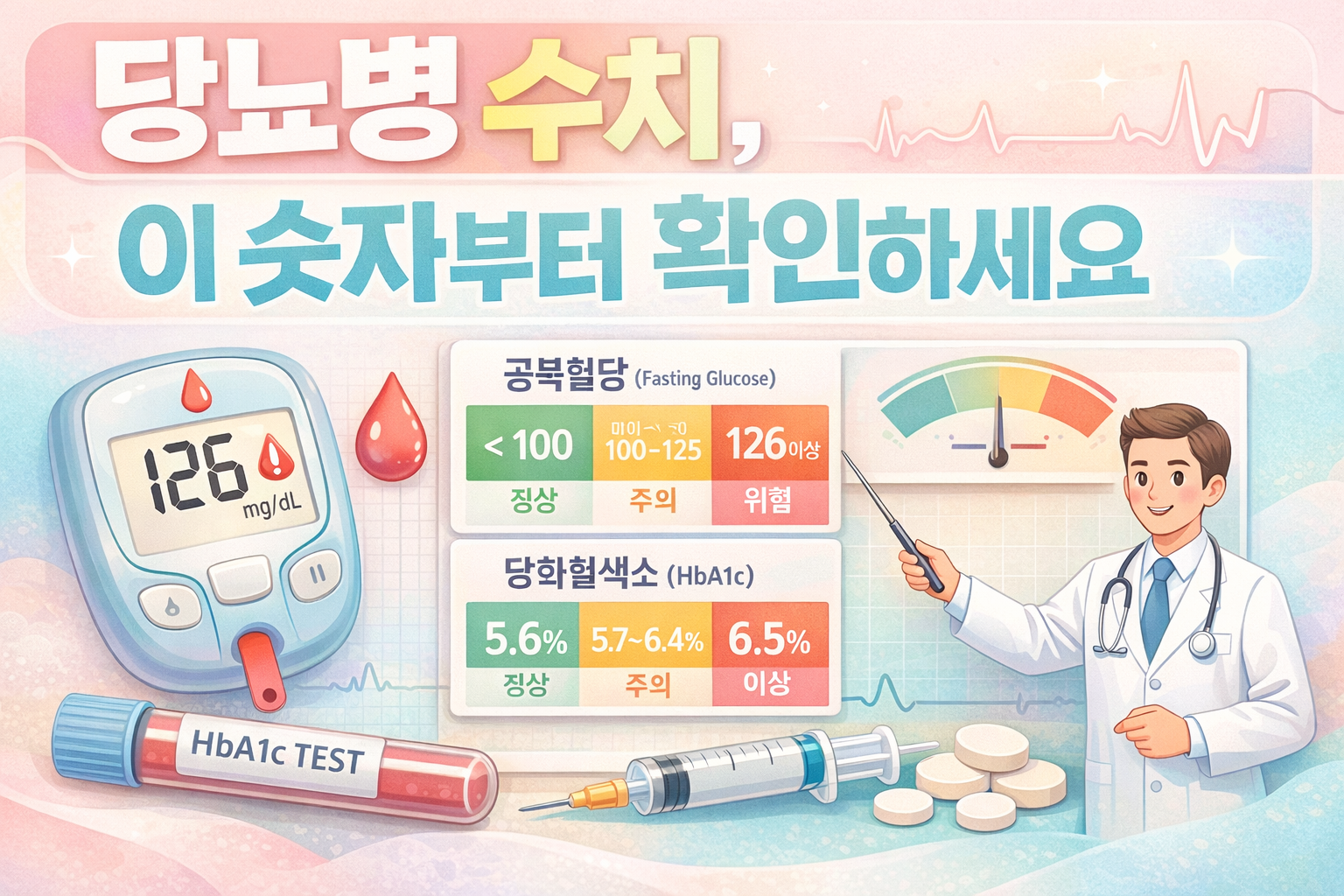 | 당뇨병 수치부터 제대로 이해하기: 공복 혈당 정상수치부터 당뇨 진단 기준까지 한눈에 정리! (0) | 2026.01.07 |